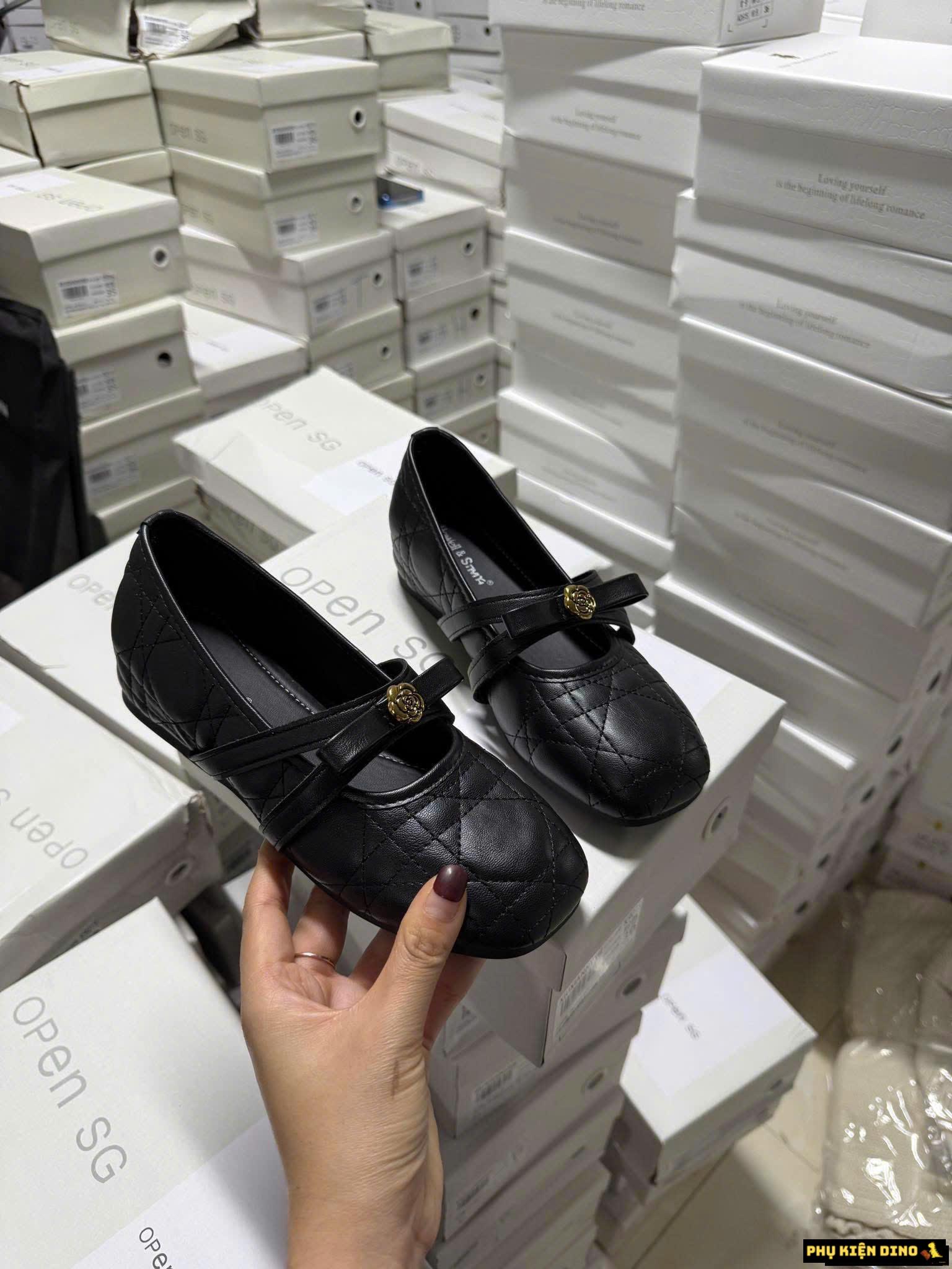 Một số hình ảnh Giày Búp Bê Nữ Màu Trắng Đen Howell SYMYH Đế Cao 4cm Fullbox