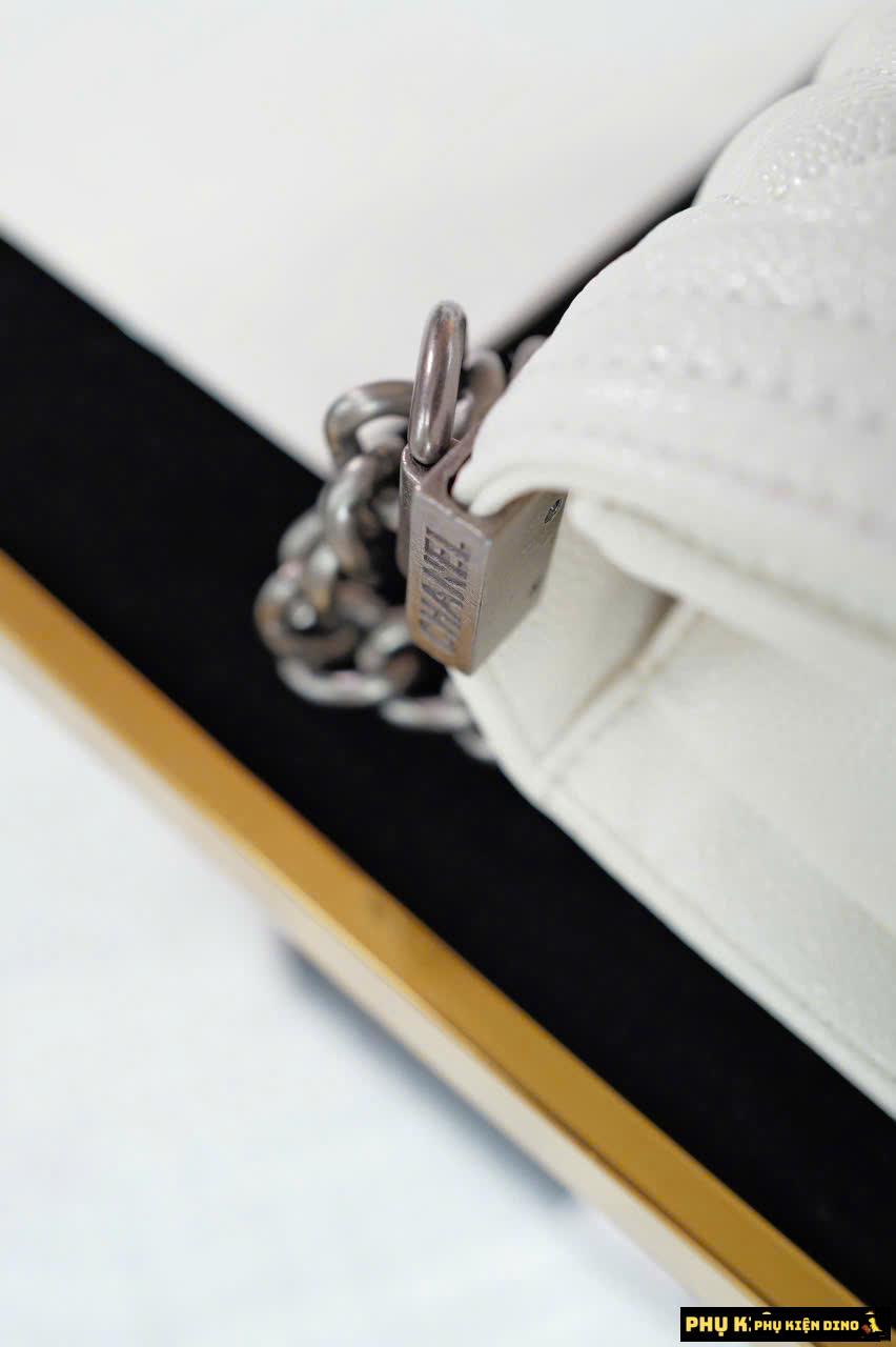 Một số hình ảnh Túi Chanel Baby Pink Black White Leather Boy Bag Size 25 Fullbox